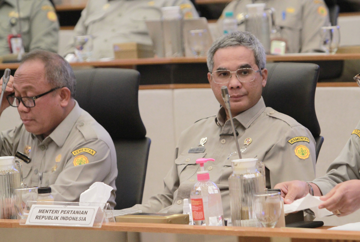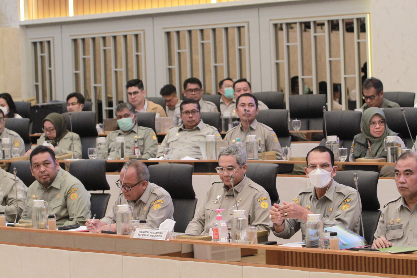 SinPo.id - Komisi IV DPR RI gelar Rapat Kerja (Raker) dengan Menteri Pertanian yang diwakilkan oleh Wakil Menteri Pertanian Harvick Hasnul Qolbi didampingi Setjen Kementerian Pertanian Kasdi Subagyono di Kompleks Parlemen, Senayan, Jakarta, Senin (20 Maret 2023). Dalam raker tersebut tampak hadir juga Dirut Bulog Budi Waseso, Dirut Pupuk Indonesia Ahmad Bakir Pasaman, Dirut PT Rajawali Nusantara Indonesia Frans Maganda Tambunan dan Raker dipimpin langsung oleh Ketua Komisi IV DPR RI, Sudin, didampingi oleh Wakil Ketua G Budisatrio Djiwandono, Wakil Ketua Dedi Mulyadi, Wakil Ketua Hasan Aminudin. Raker tersebut berencana membahas persiapan stock pangan menjelang Ramadan.