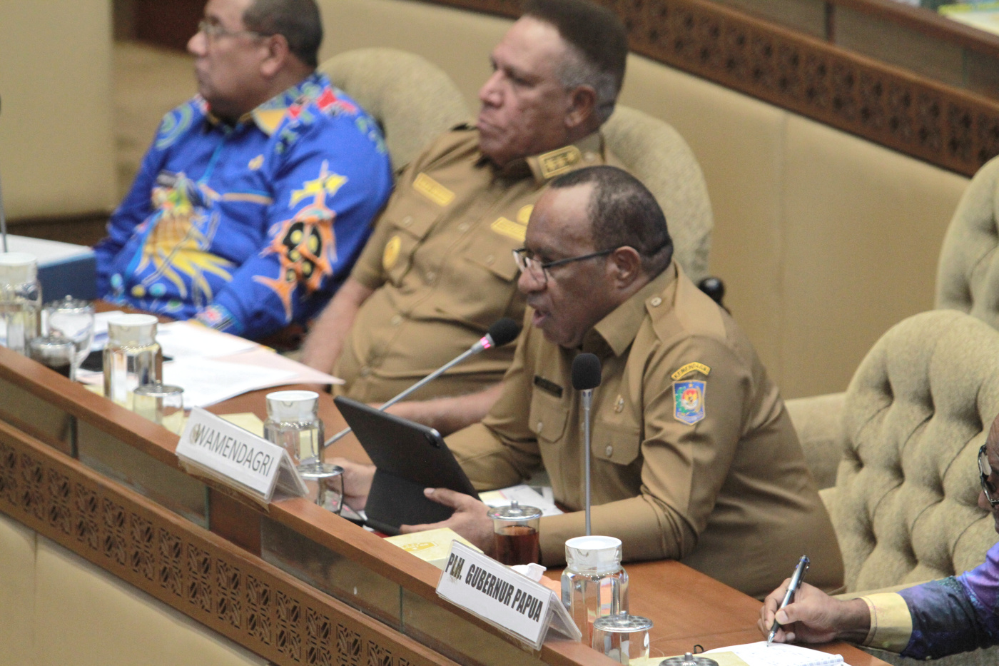 SinPo.id - Komisi II DPR gelar Rapat Dengar Pendapat (RDP) dengan Menteri Dalam Negeri (Mendagri) yang diwakilkan oleh Wakil Menteri Dalam Negeri (Wamendagri) John Wempi Wetipo di Kompleks Parlemen, Senayan, Jakarta, Senin (20 Maret 2023). Dalam RDP tersebut membahas Pemerintah Provinsi Papua yang dihadiri seluruh oleh Pj Gubernur Papua, Pj Gubernur Papua Selatan, Pj Gubernur Papua Tengah, Pj Gubernur Papua Barat Daya, Pj Gubernur Papua Pegunungan, Pimpinan DPRD Provinsi Papua dan Pimpinan DPRD Provinsi Papua Barat.