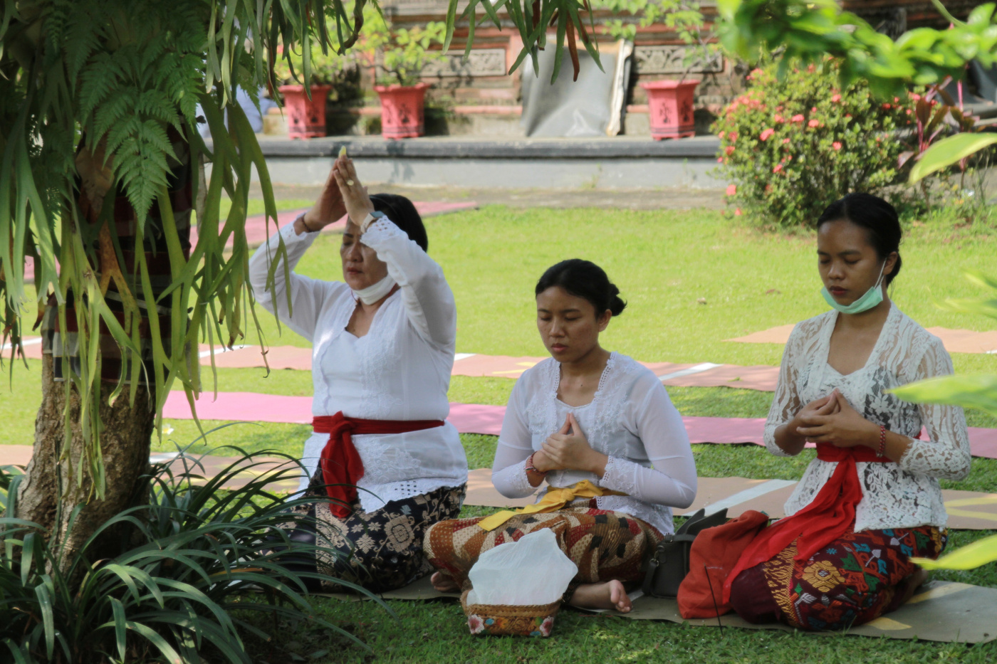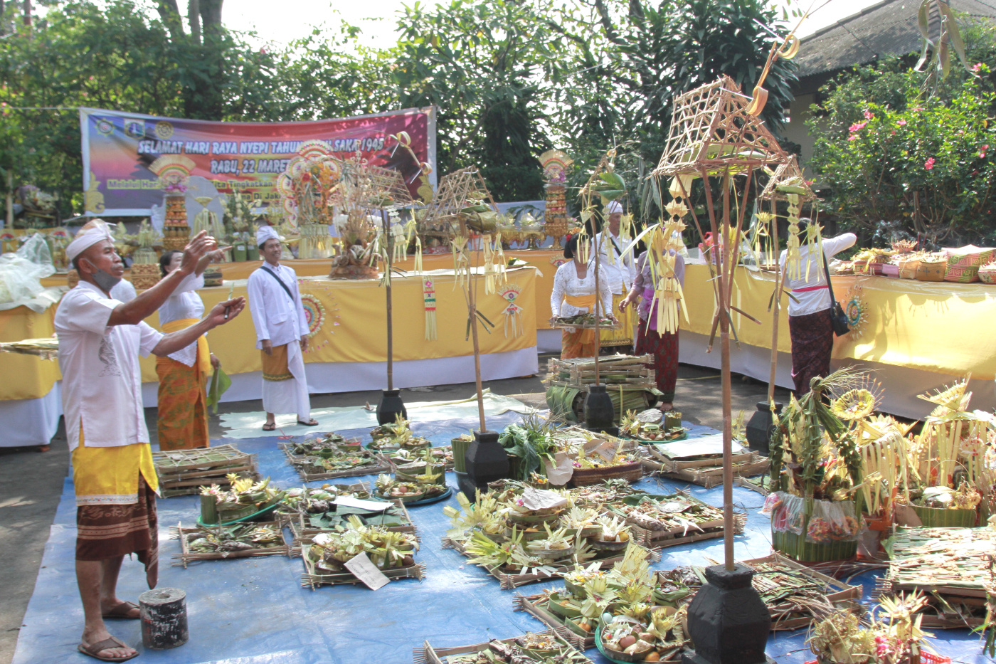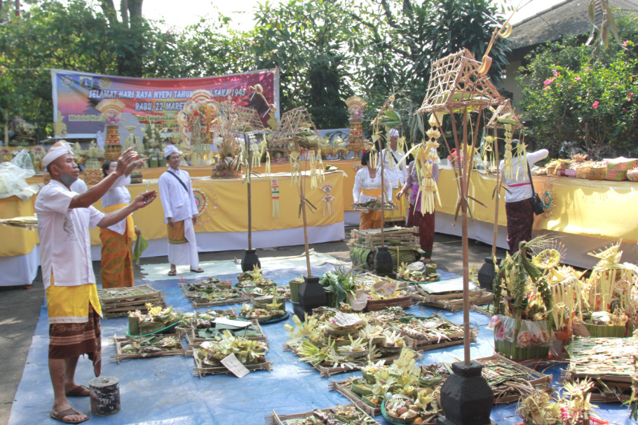Umat Hindu melaksanakan sembayang Tawur Kasanga mensucikan diri menjelang hari raya Nyepi besok (Ashar/SinPo.id)