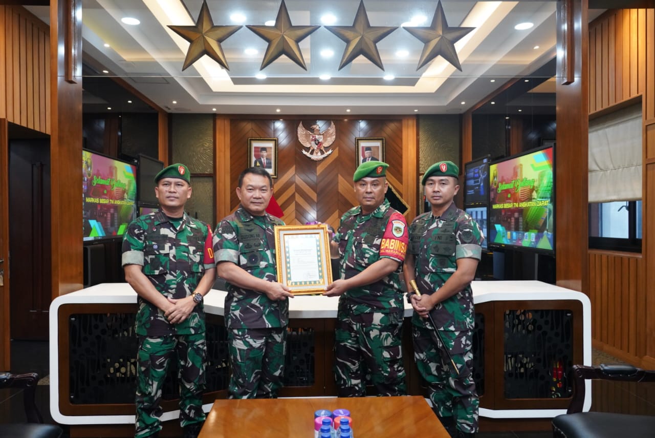 SinPo.id - Kepala Staf Angkatan Darat (KSAD) Jenderal TNI Dudung Abdurachman memberikan penghargaan kepada Bintara Pembina Desa Komando Rayon Militer (Babinsa Koramil) 0621-01 Cibinong Kodim 0621/Bogor, Serka Sunardi, yang menggagalkan peredaran narkotika dan obat terlarang (narkoba) jenis ganja kering seberat 6,5 kilogram (kg).