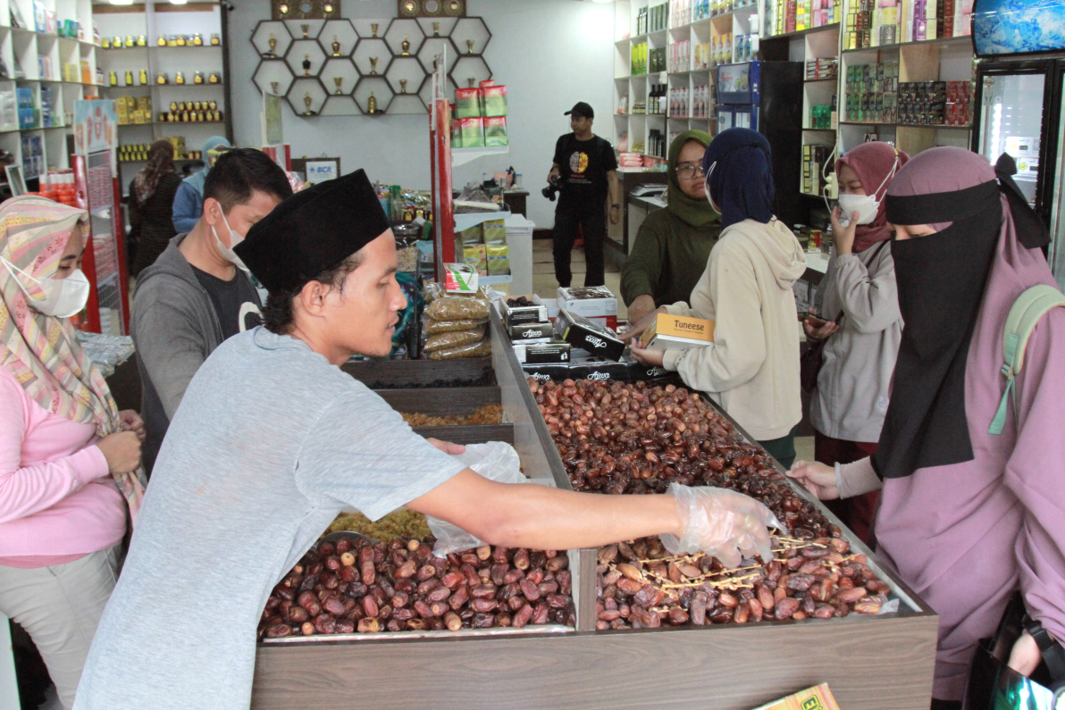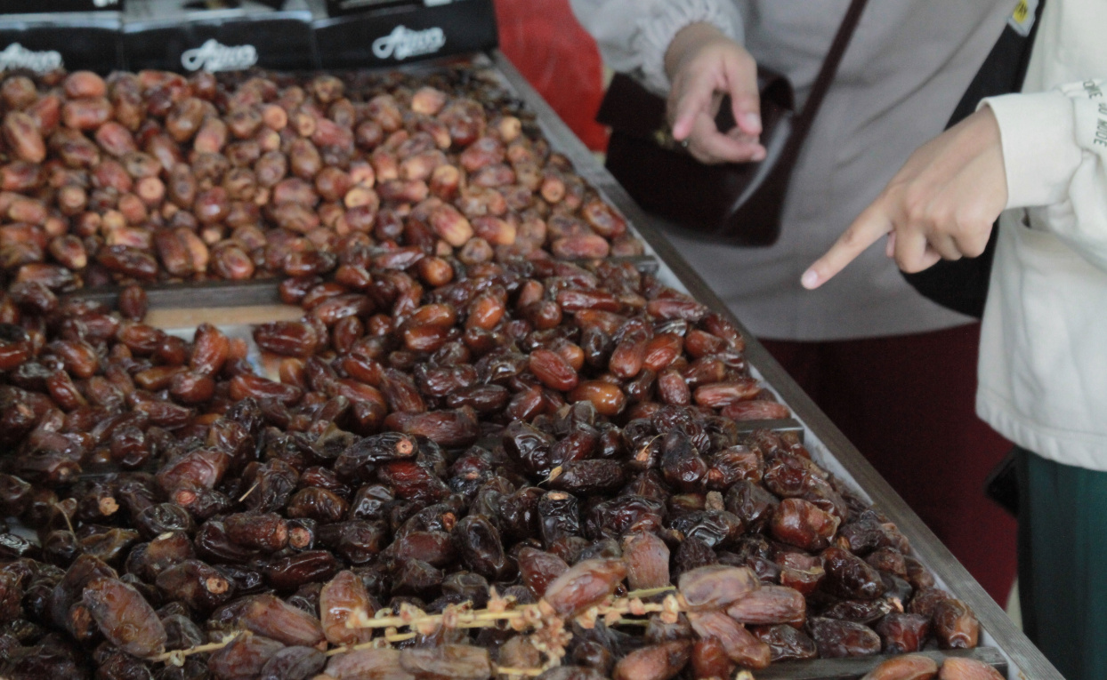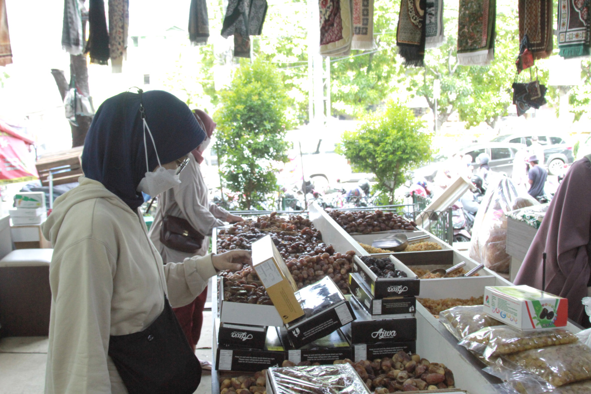 Pedagang kurma dipadati pembeli untuk menu takjil saat berbuka puasa (Ashar/SinPo.id)