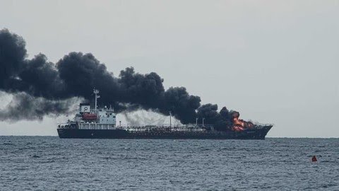Kapal tersebut membawa 900 kiloliter Pertalite masih dalam kondisi terbakar hingga saat ini.