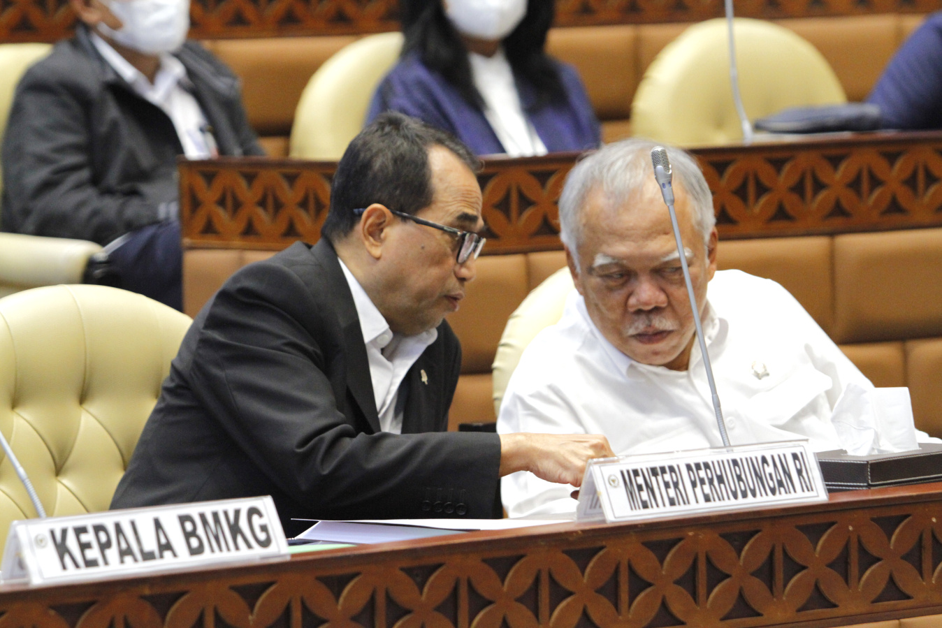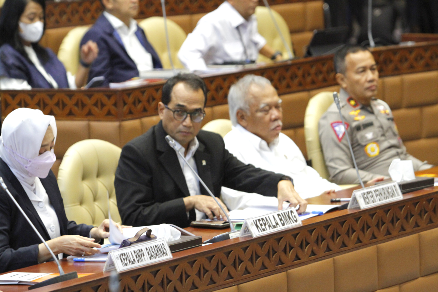 SinPo.id - Komisi V DPR RI menggelar Rapat Dengar Pendapat (RDP) dengan Menteri Perhubungan Budi Karya Sumadi, Menteri PUPR Basuki Hadimuljono, Kepala BMKG Dwikorita Karnawati dan Kepala Basarnas Henri Alfiandi di Kompleks Parlemen, Senayan, Jakarta, Selasa (4 April 2023). Dalam RDP tersebut yang dipimpin langsung Ketua Komisi V DPR RI Lasarus membahas memgenai persiapan Infrastruktur dan Transportasi Mudik Lebaran Tahun 2023.