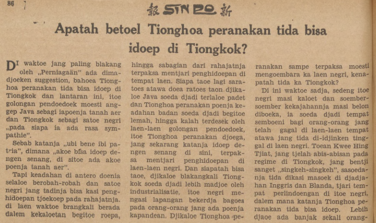 Apatah betoel Tionghoa peranakan tida bisa idoep di Tiongkok?
