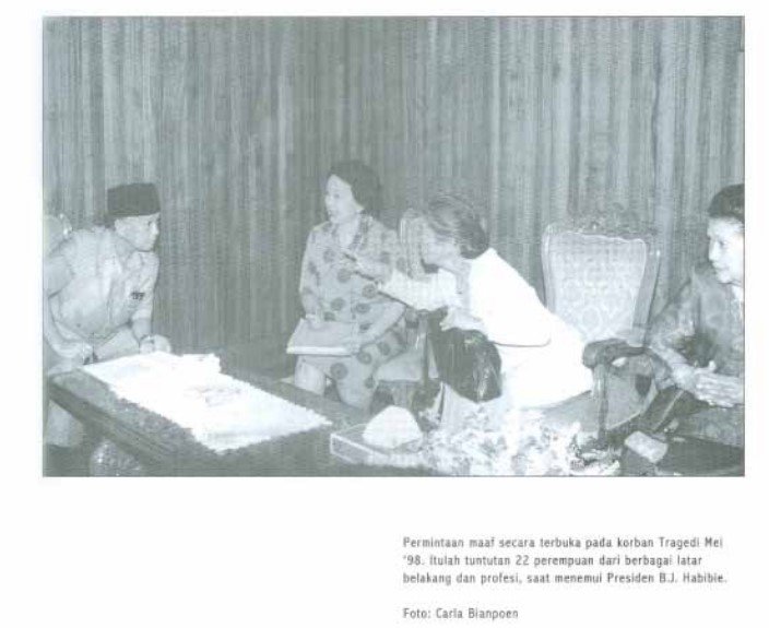 Dari pertemuan tersebut, hasilnya tak hanya sebuah permintaan maaf, pemerintah juga membentuk Tim Gabungan Pencari Fakta (TGPF) dan membentuk Komisi Nasional Anti Kekerasan terhadap Perempuan (Komnas Perempuan).