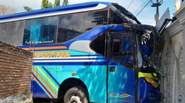Hilang Kendali, Bus Hantam Empat Kendaraan Sebelum Tabrak Pagar Masjid