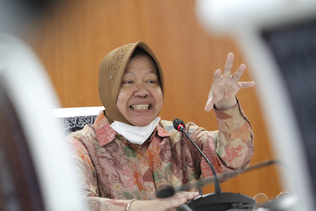 Mensos Tri Rismaharini gelar konfrensi pers terkait KPK melakukan pengeledahan di Kemensos (Ashar/SinPo.id)