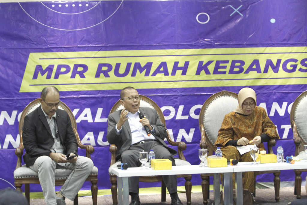 SinPo.id - Koordinatoriat Wartawan Parlemen (KWP) bekerja sama dengan Biro Hubungan Masyarakat dan Sistem Informasi Sekretariat Jenderal MPR RI menggelar diskusi Empat Pilar dengan tema" Halal Bihalal Mampu Memperkuat Rasa Kebangsaan" di Media Center MPR RI, Kompleks Parlemen, Senayan, Jakarta, Rabu (24 Mei 2023). Dalam diskusi Empat Pilar MPR RI tersebut turut mengundang narasumber dengan Wakil Ketua MPR RI Asrul Sani, Peneliti BRIIN Prof Siti Zuhro dipimpin oleh moderator Aliyudin Wartawan KWP.