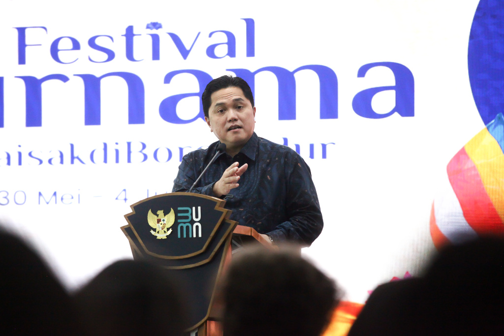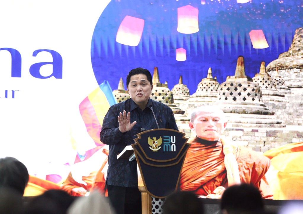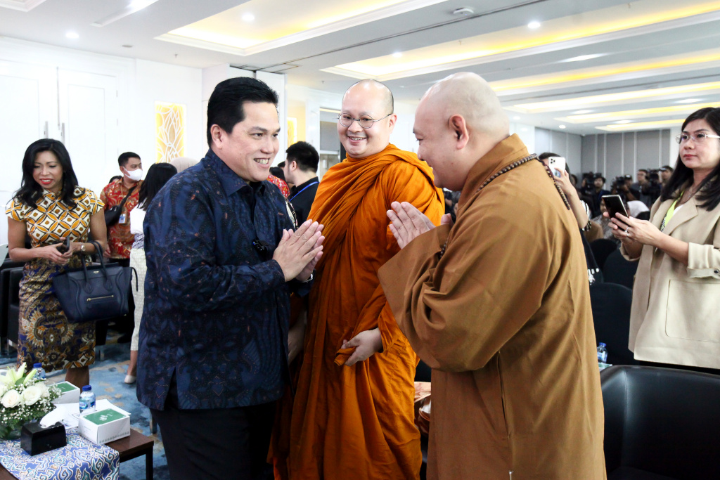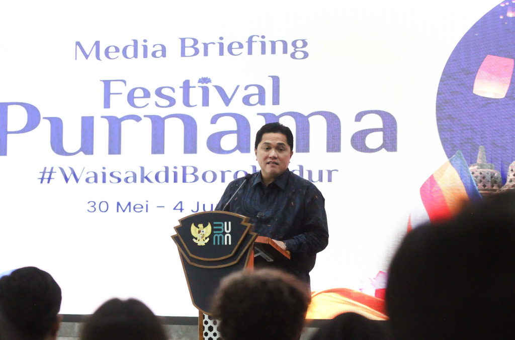 SinPo.id - Menteri Badan Usaha Milik Negara (BUMN) Erick Thohir menghadiri Media briefing Festival Purnama Candi Borobudur dalam rangkaian perayaan Hari Raya Waisak di Gedung BUMN, Jakarta, Kamis (25 Mei 2023). Menteri BUMN Erick Thohir mengatakan acara festival purnama Candi Borobudur ini sangat menarik saya tarik pariwisata Indonesia.