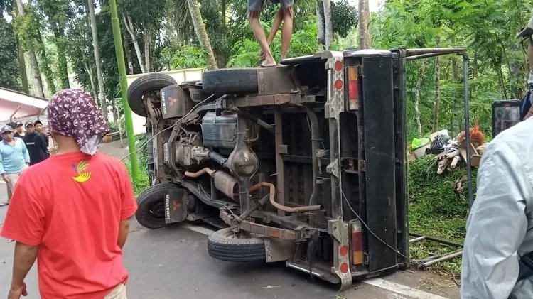 Menurut Dwi, mobil pikap itu diduga mengalami rem blong. Diduga pengemudi tidak bisa mengendalikan kendaraannya akhirnya mengalami kecelakaan tunggal.