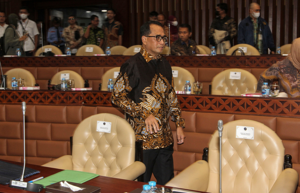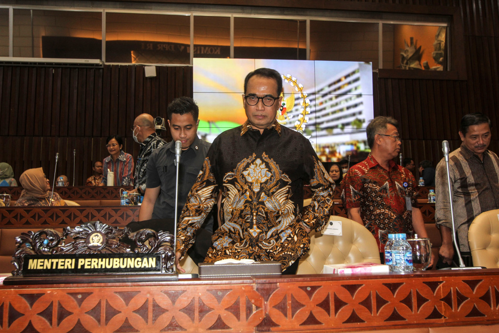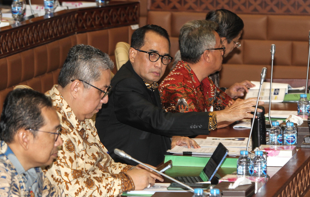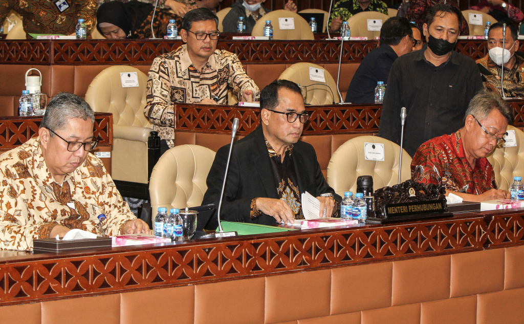 Menhub Budi Karya Sumadi menghadiri Raker dengan Komisi V DPR (Ashar/SinPo.id)