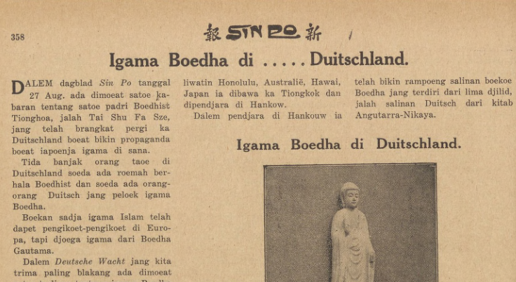 Tida banjak orang taoe di Duitschland soeda ada roemah berhala Boedhist dan soeda ada orang-orang Duitsch jang peloek igama Boedha. Boekan sadja igama Islam telah dapet pengikoet-pengikoet di Europa, tapi djoega igama dari Boedha Gautama.