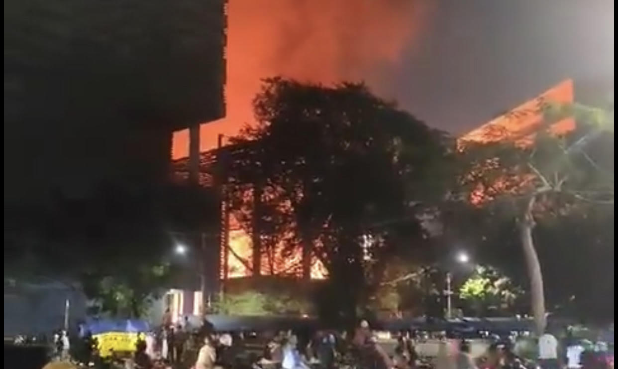 Museum Nasional yang berlokasi di Jl Medan Merdeka Barat, Jakarta Pusat, seberang Monas itu, dikenal sebagai Museum Gajah. Hingga saat ini, api masih melahap bagian gedung. Peristiwa ini bahkan menarik perhatian warga yang melintas di depan gedung.