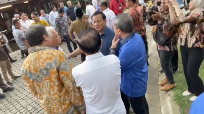 Prabowo Bersama Pimpinan Parpol KIM Sambut SBY dan AHY di Hambalang