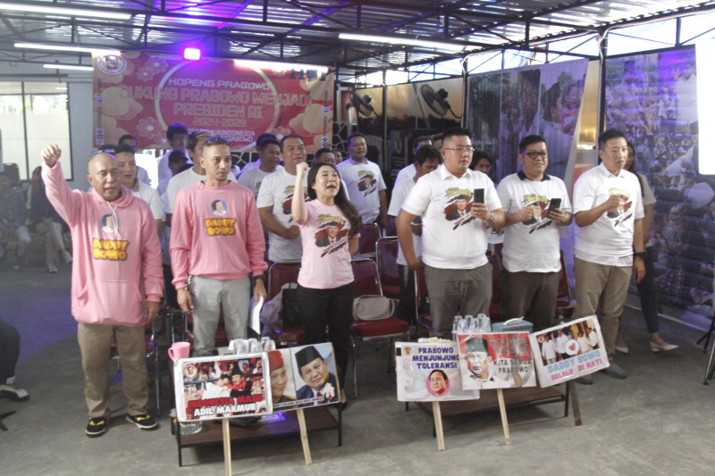 SinPo.id - Relawan Hopeng (Etnis Tionghoa) Deklarasi dukung Prabowo Presiden di Rumah Besar Relawan 08 Prabowo, Slipi, Jakarta Barat, Senin (18 September 2023). Dalam Deklarasi tersebut Ketua Umum Relawan Hopeng Viani Minardi mengatakan, Dengan isi maklumat sebagai berikut, Integritas dan Dedikasi Pak Prabowo telah terbukti sebagai pemimpin yang tulus dan memiliki integritas yang tinggi dalam menjalankan tugas-tugas publik, Visi dan Program kami sepenuhnya mendukung visi dan program-program untuk memajukan Indonesia, Kami mengapresiasi upaya Bapak Prabowo dalam mempersatukan berbagai elemen masyarakat Indonesia, Kami mendukung rencana Bapak Prabowo untuk meningkatkan kemandirian ekonomi Indonesia dan menciptakan lapangan kerja bagi masyarakat. Ketua Koordinator Relawan 08 Prabowo Fauzi Baadila mengatakan mari kita dukung dan menangkan Pak Prabowo dengan cara-cara yang positif dan damai.