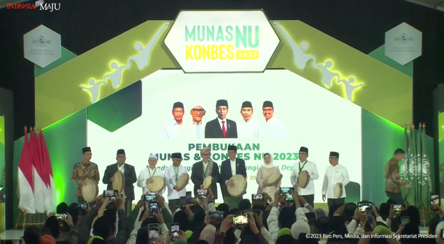 “Atas nama masyarakat, bangsa, dan negara, saya menyampaikan terima kasih kepada para alim ulama, para kiai, para masyayikh, dan kepada keluarga besar Nahdlatul Ulama,” ucap Presiden.
