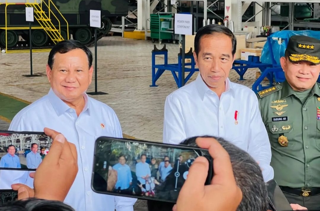 Menhan Prabowo mendampingi Presiden Jokowi meninjau fasilitas produksi PT Pindad Bandung (Ashar/Foto:Tim Prabowo/SinPo.id