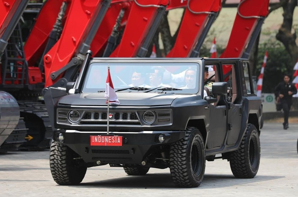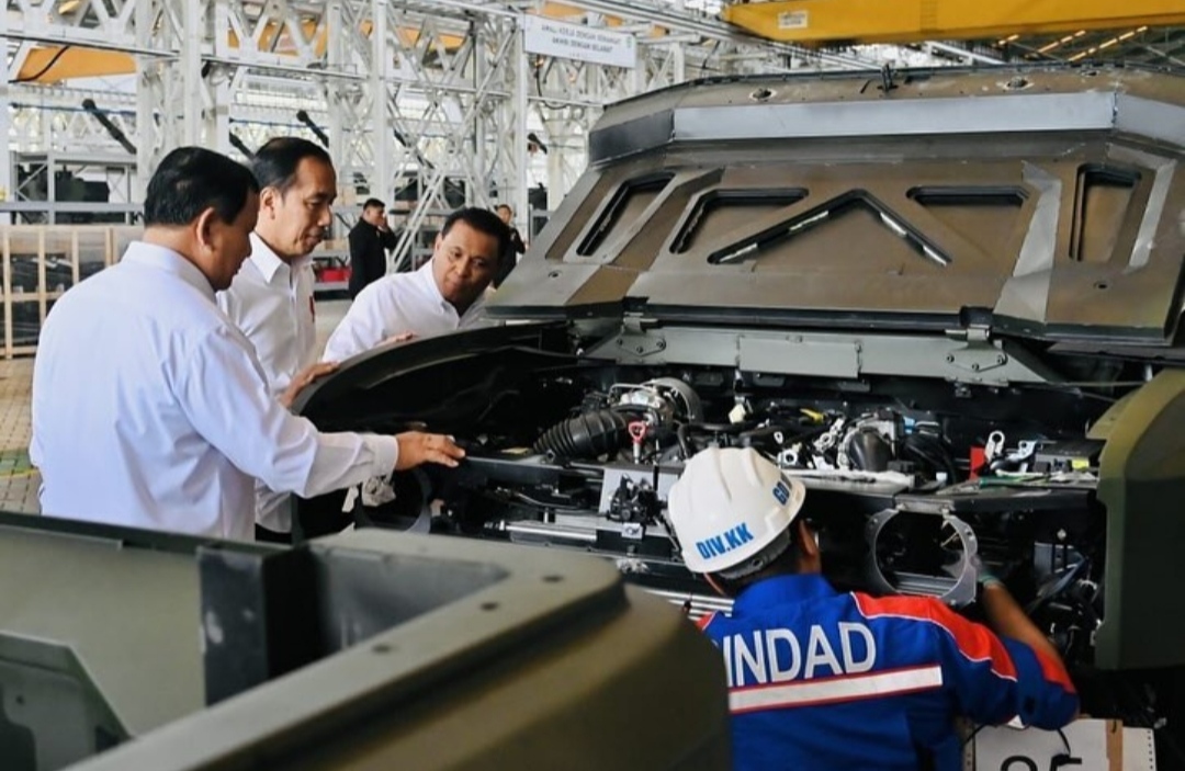 SinPo.id - Menteri Pertahanan (Menhan) Prabowo Subianto mendampingi Presiden Jokowi dalam kunjungan kerja (Kunker) di PT Pindad, Bandung, Jawa Barat, Selasa (19 September 2023). Dalam kunjungan kerja tersebut Menhan Prabowo dan Presiden Jokowi meninjau fasilitas produksi alat berat, kendaraan khusus serta produk unggulan pertahanan maupun industrial lainnya, termasuk motor listrik buatan PT LEN Industri (Persero). Presiden Jokowi mengatakan, Bahwa PT Pindad mengalami perkembangan yang sangat luar biasa cepat, dimana tahun 2022 berada di peringkat ke-79 sebagai perusahaan pertahanan dan diperkirakan tahun 2024 bisa masuk peringkat ke-60, kemudian tahun 2025 ke peringkat-50.