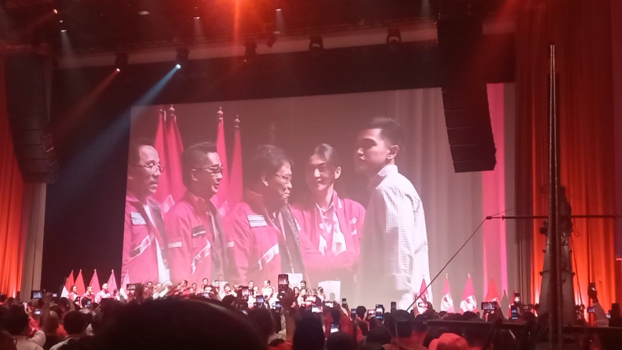 Kader dan simpatisan PSI yang hadir dalam Kopdarnas menyambut riuh saat Cheryl Tanzil memanggil Kaesang untuk naik ke panggung sebagai Ketum PSI yang baru.