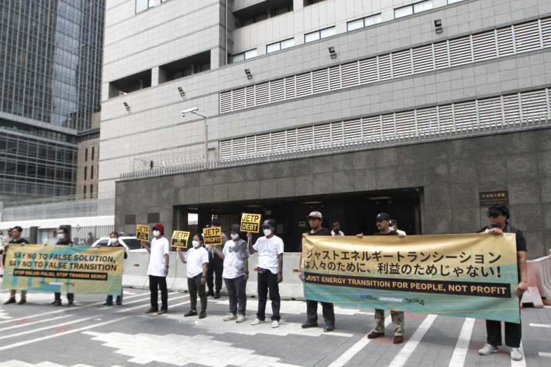 Greenpeace Gelar Demo Teatrikal JETP di Kedubes Jepang