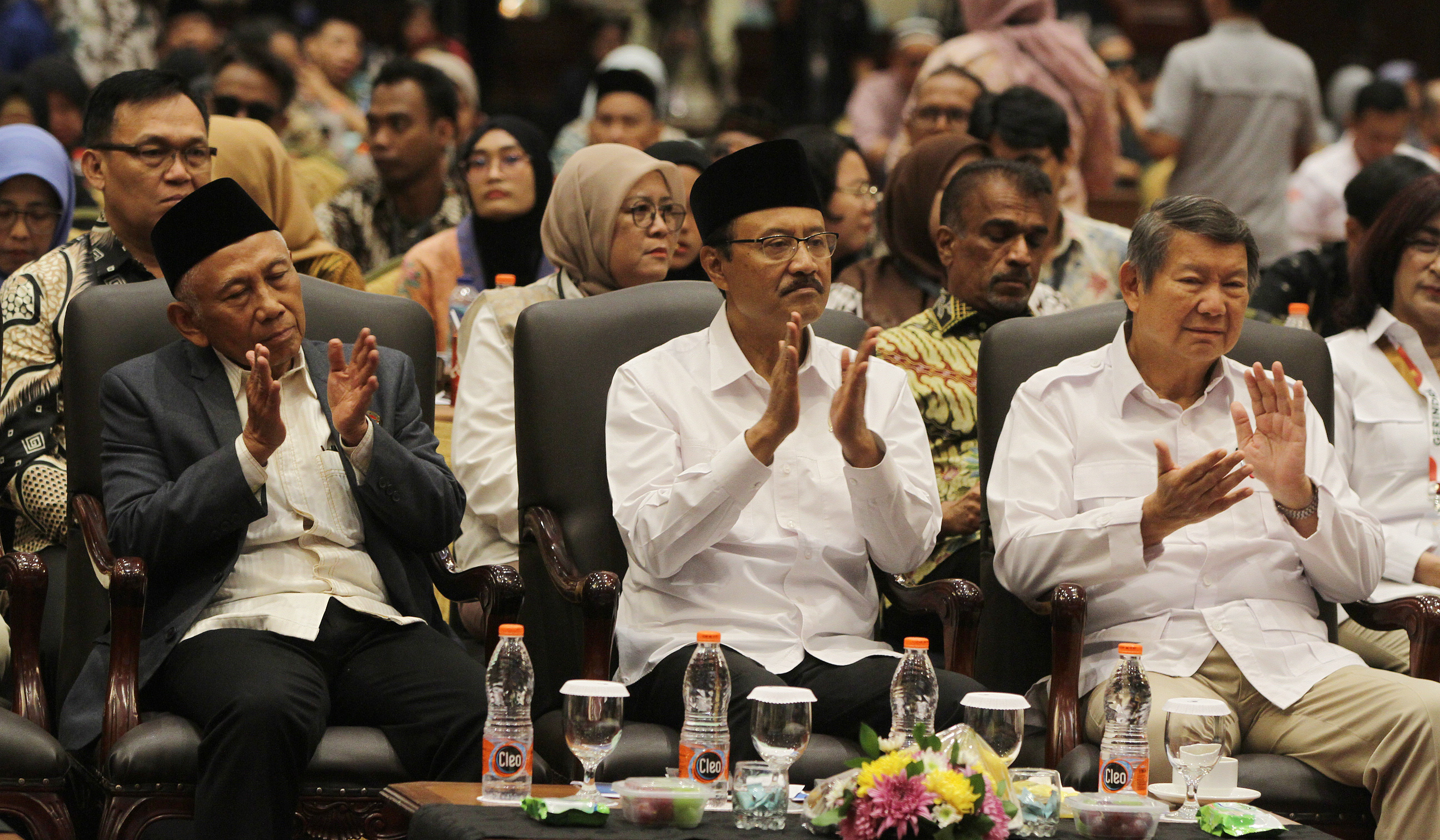 SinPo.id - Menteri Sosial RI, Saifulah Yusuf (tengah), bersama Wakil Ketua Dewan Pembina Partai GERINDRA, Hashim Djojohadikusumo (kanan), Ketua Umum DNKIS, Efendi Choirie (kiri), saat menghadiri peringatan Hari Disabilitas yang digelar oleh DPP Partai Gerindra di Jakarta, Senin (8 Desember 2025). Ke