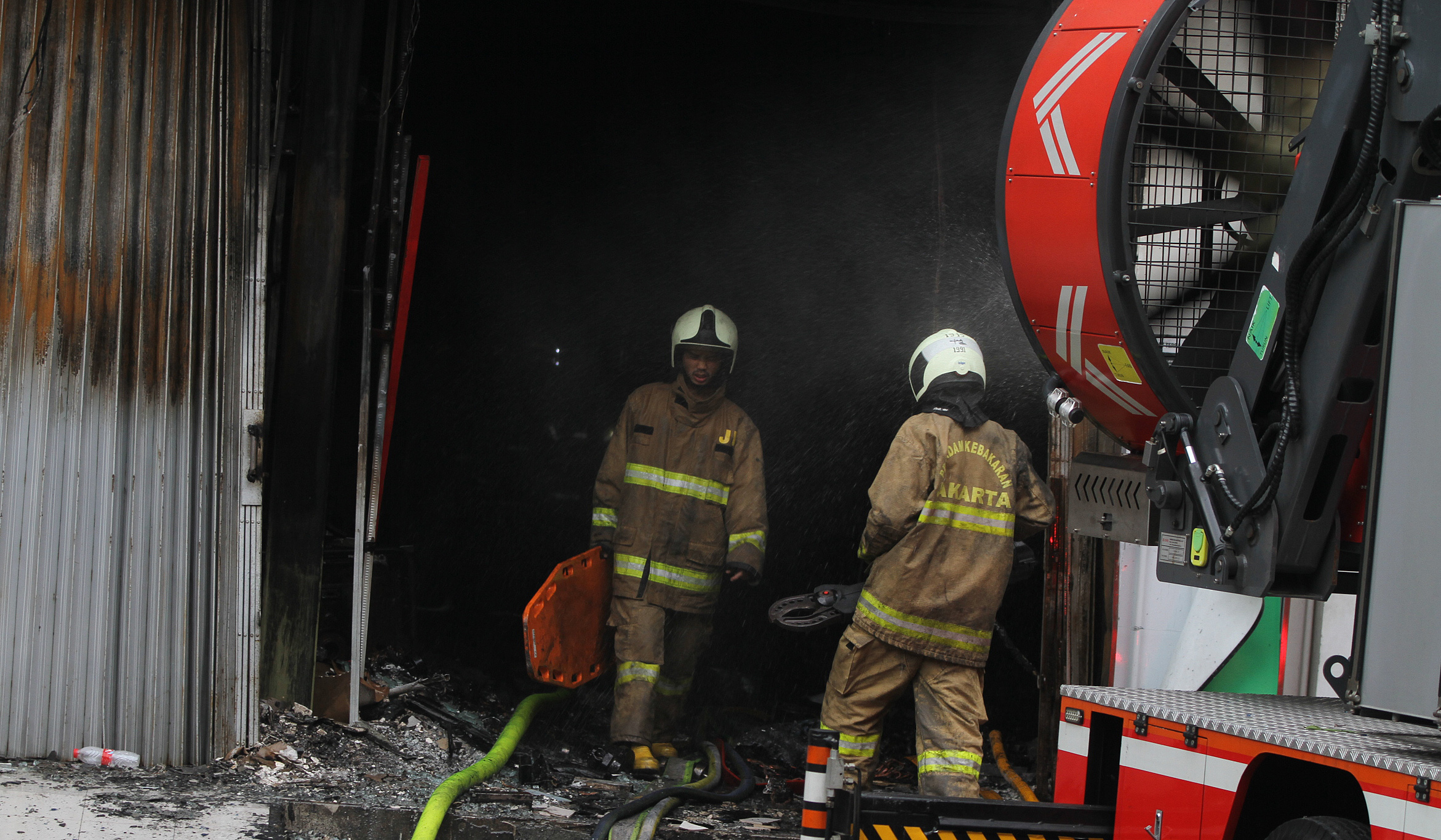 SinPo.id - Petugas usai memadamkan api yang membakar Gedung Terra Drone, kawasan Cempaka Putih, Jakarta, Selasa (9 Desember 2025). Berdasarkan data dilapangan kebakaran itu terjadi pada sekitar 12.30 WIB, diduga, penyebab kebakaran itu terjadi akibat keberadaan baterai terbakar di lantai 1 gedu