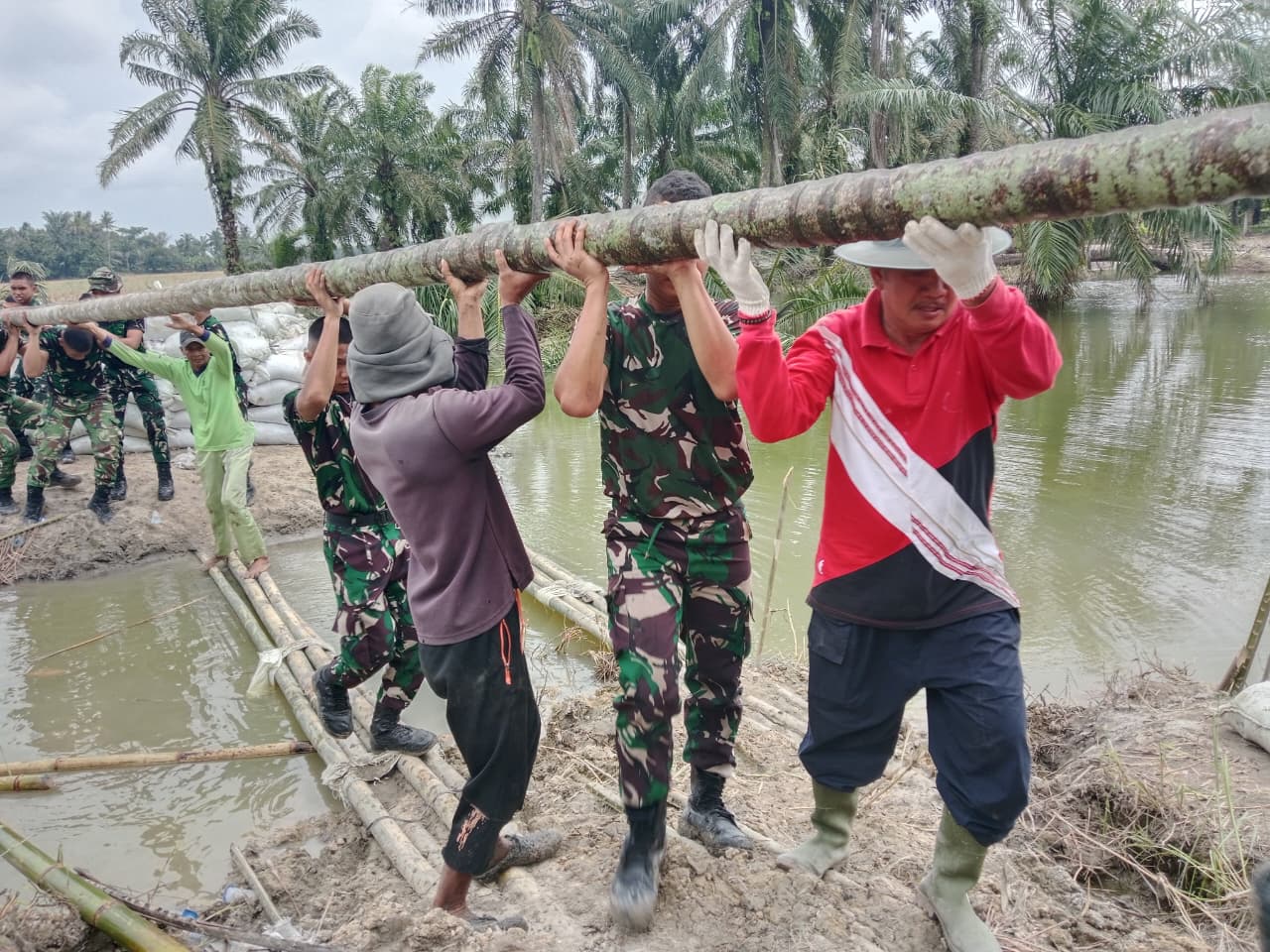 TNI Bersama Masyarakat Perbaiki Tanggul Jebol di Langkat